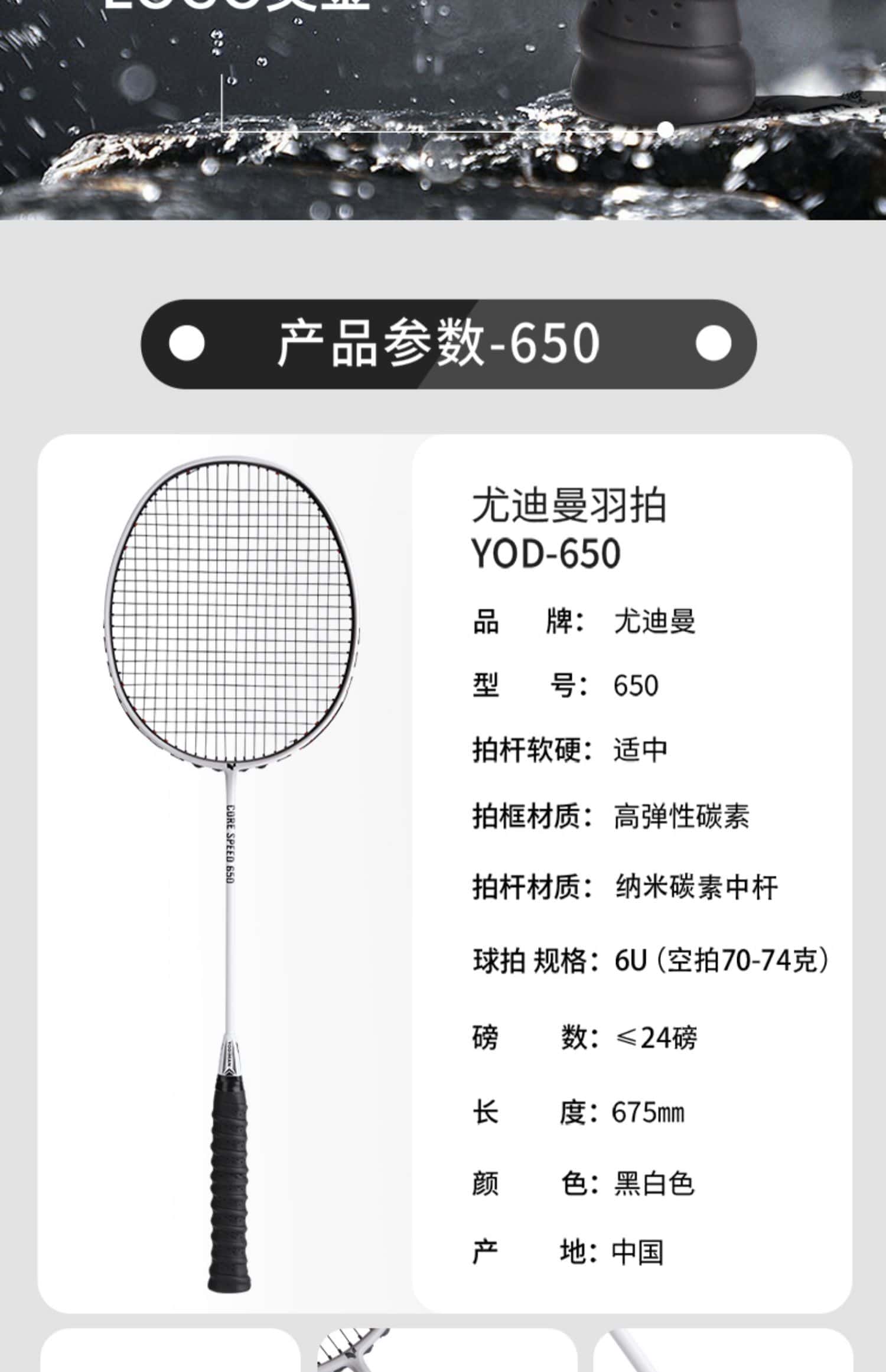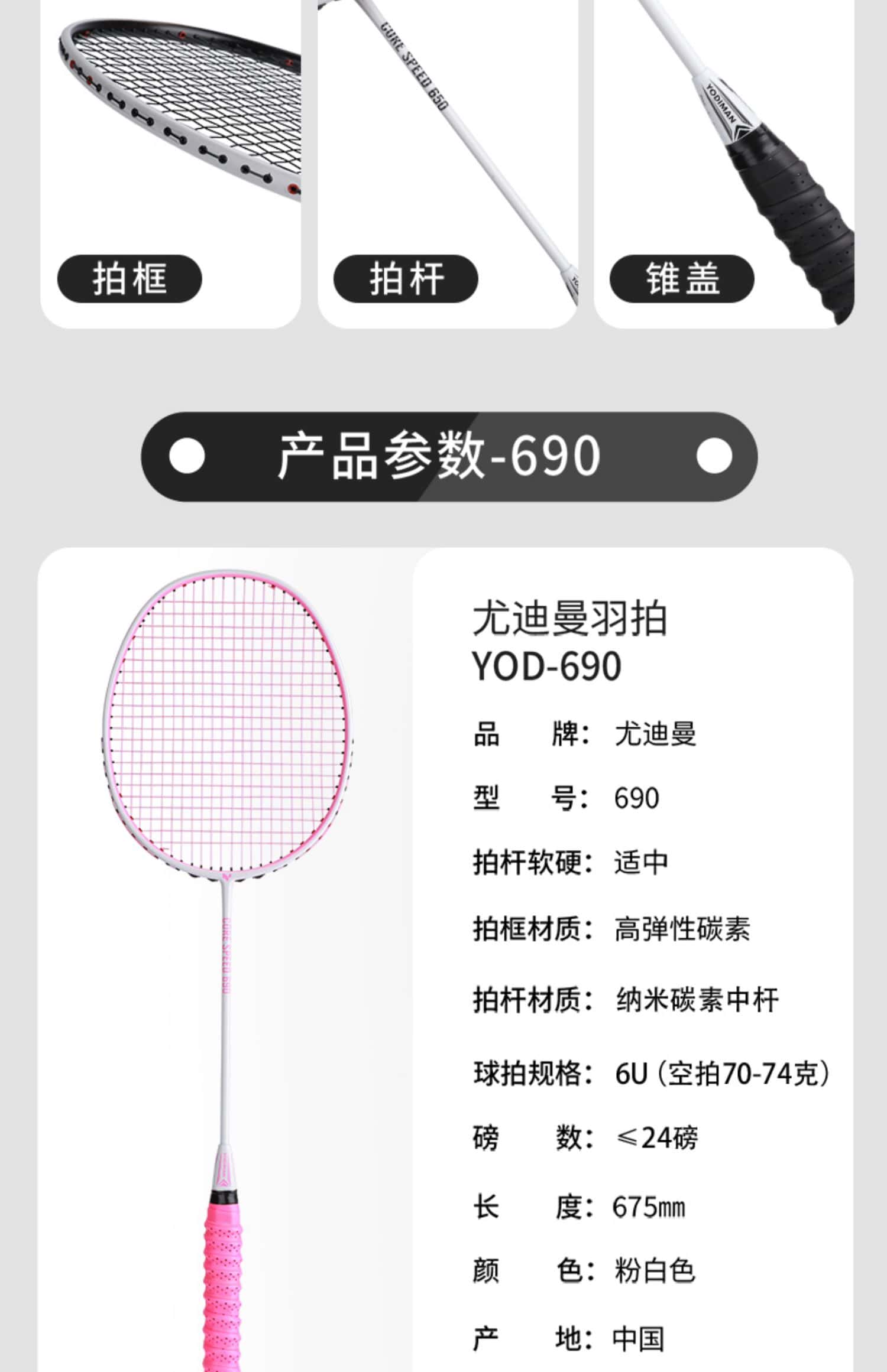 尤迪曼6U超轻全碳素羽毛球拍大学生训练专用体育课攻守型单拍套装