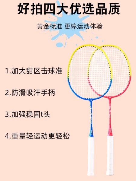 一体羽毛球拍正品套装双拍耐用型儿童专用球拍子女专业超轻进攻型