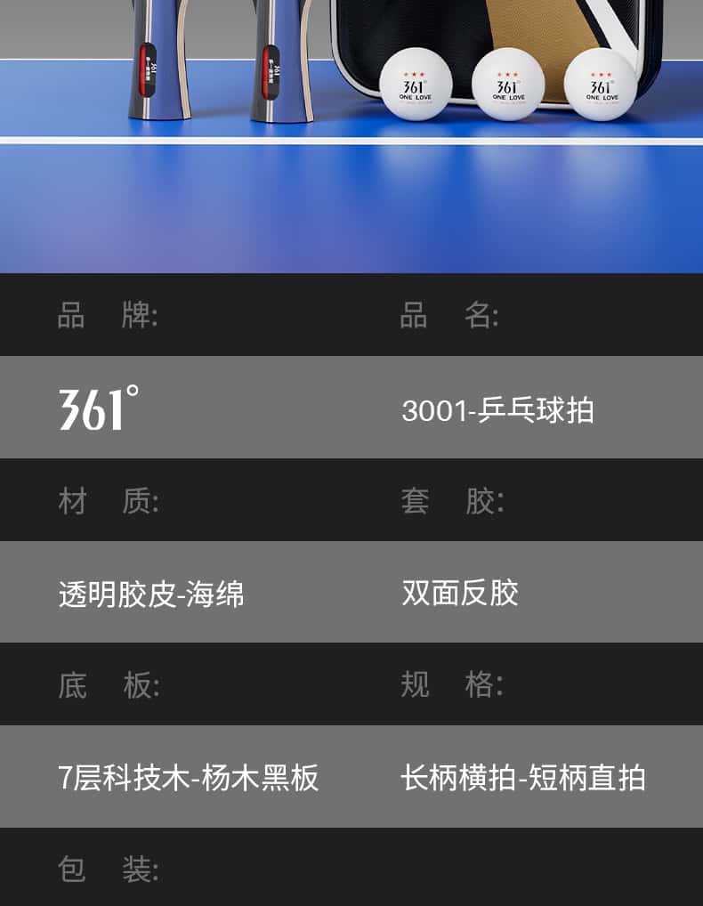 361度乒乓球拍小学生专用儿童初学者兵乓球拍单拍横直正品旗舰店
