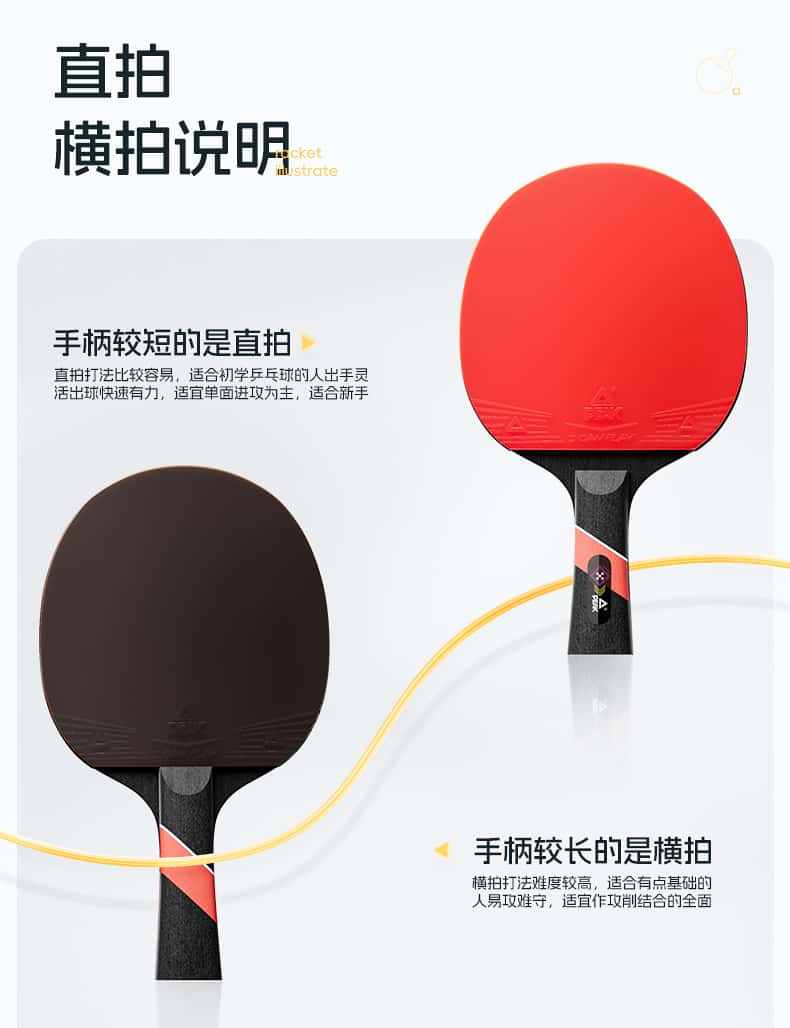 乒乓球拍初学者长柄学生高弹力儿童球拍专业级横拍直拍训练专用拍