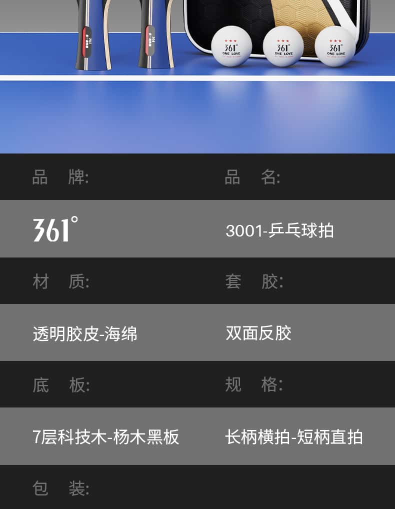 361度乒乓球拍小学生专用儿童初学者兵乓球拍单拍横直正品旗舰店