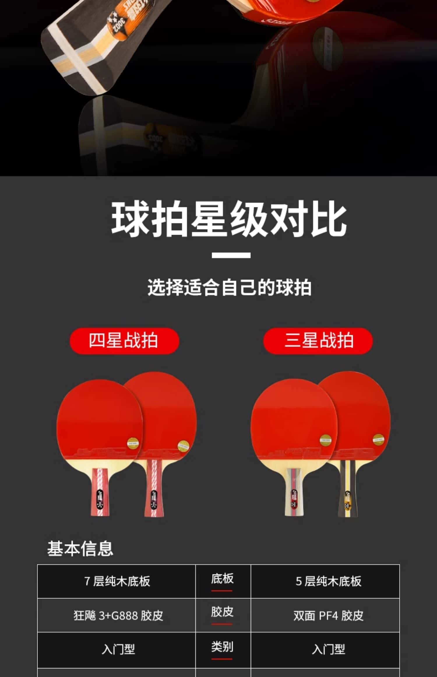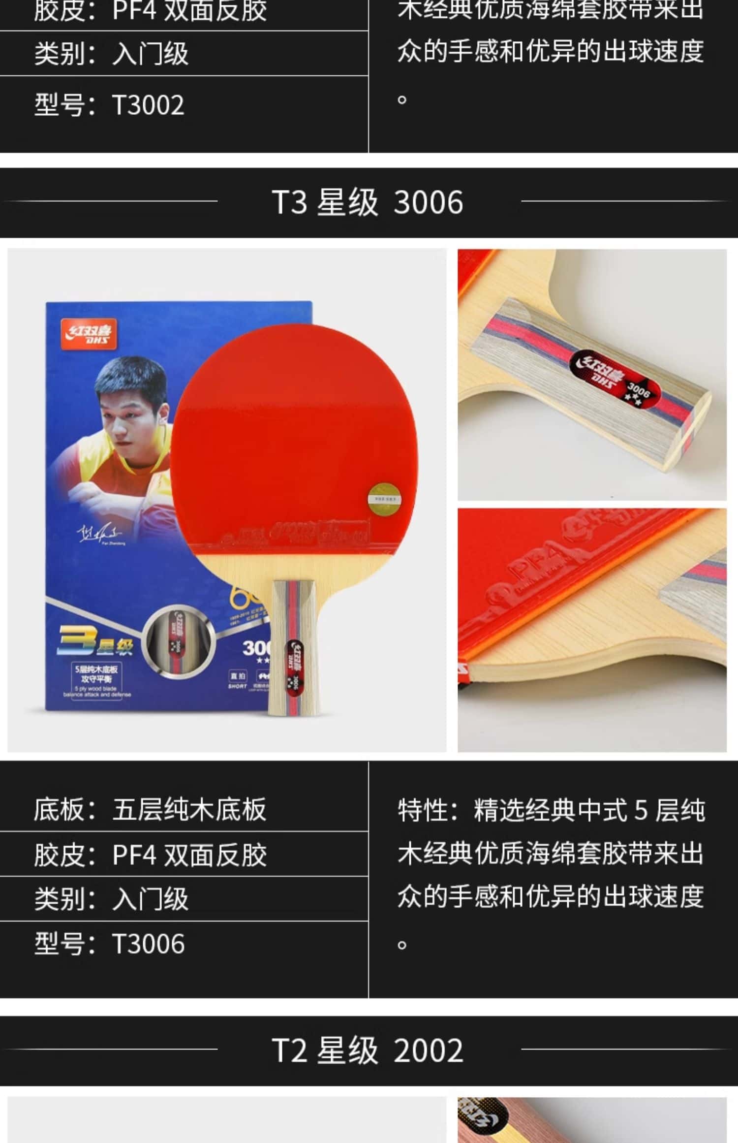 红双喜乒乓球拍正品套装三星级单支儿童国家队专用专业级兵乓球拍