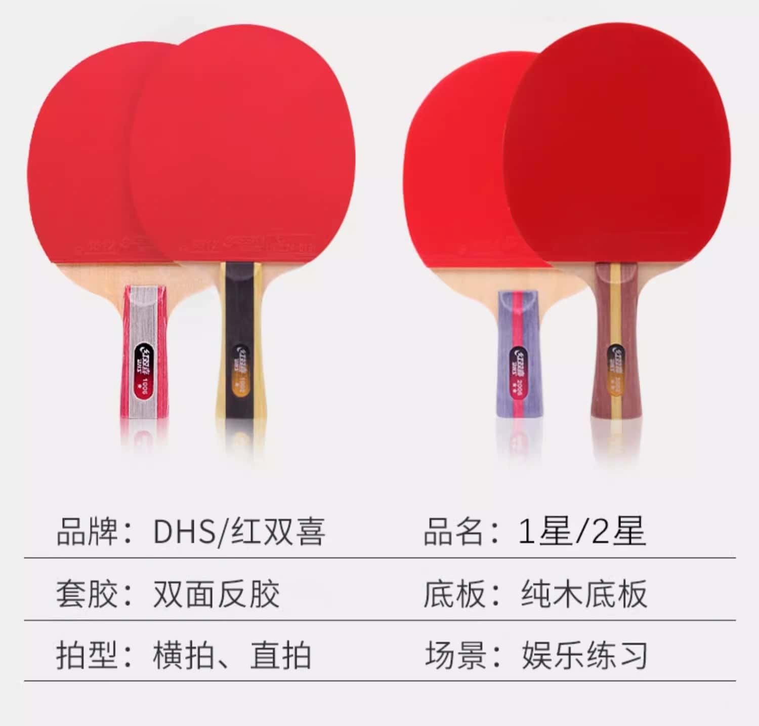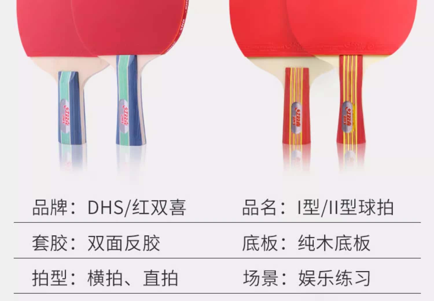 红双喜乒乓球拍双拍小学生儿童初学者兵乓球拍单拍横直正品旗舰店