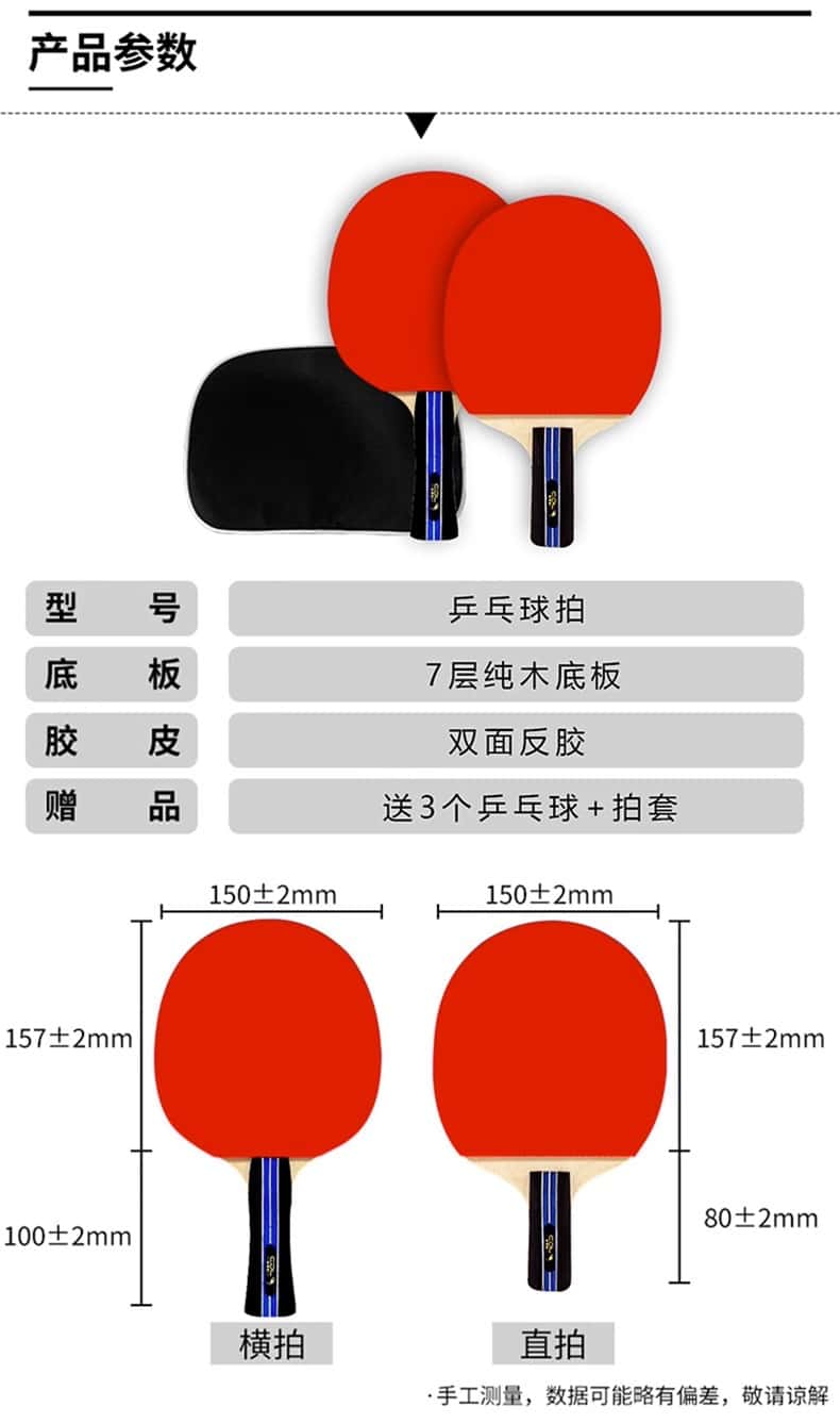 乒乓球拍七星八星反胶快攻7星8星碳素短柄直拍横拍长柄兵乓成品拍