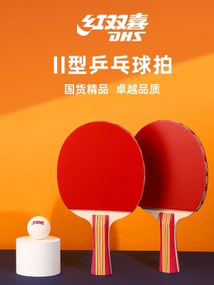 红双喜乒乓球拍双拍专业级儿童中小学生初学者兵乓直拍横拍2只装