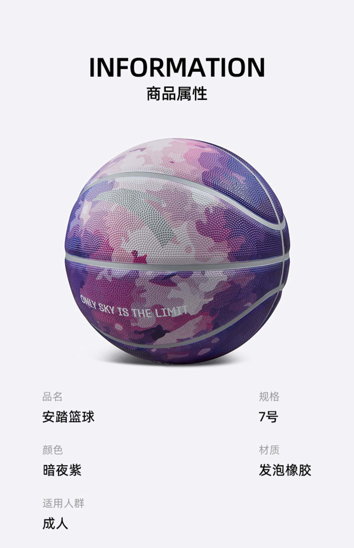 安踏篮球七号标准球新款专业室内室外通用篮球防滑耐磨暗夜紫礼物
