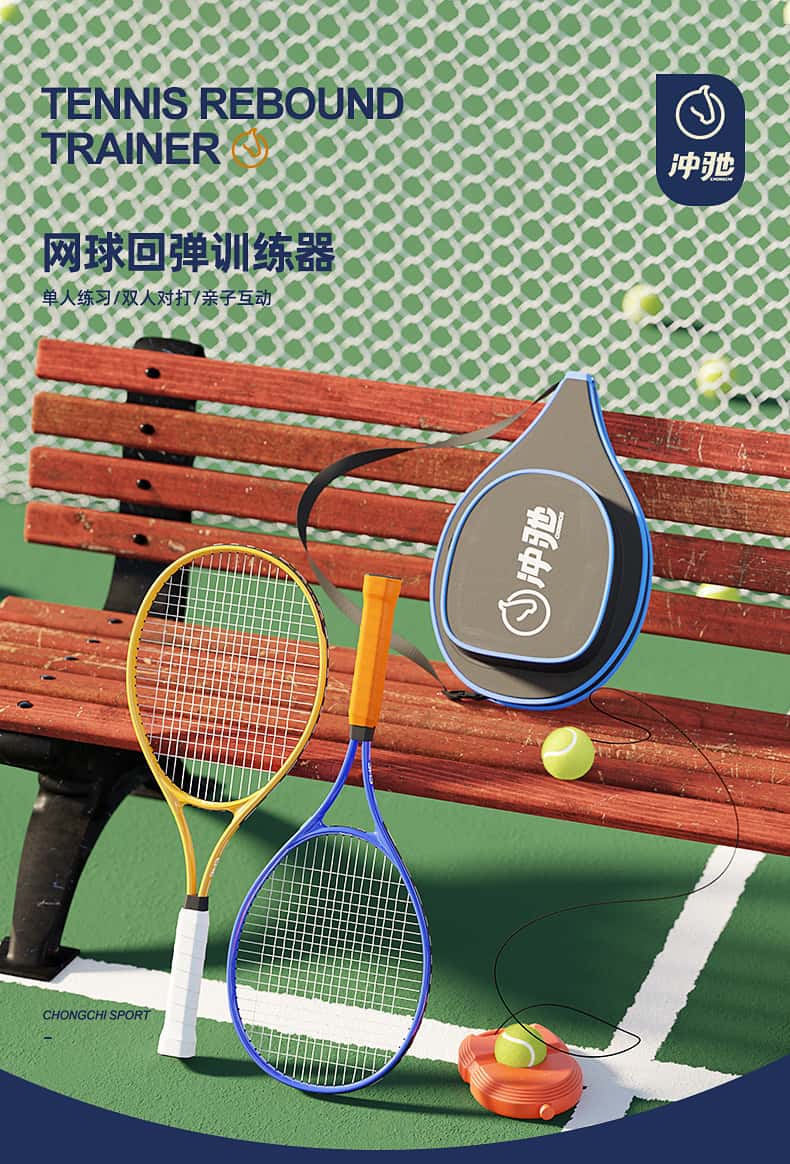 冲驰网球拍初学者大学生单人回弹训练器全碳素一体女新手双人套装
