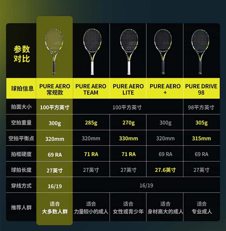 Babolat百保力网球拍pa全碳素阿尔卡拉斯球拍夺冠百宝力pure aero
