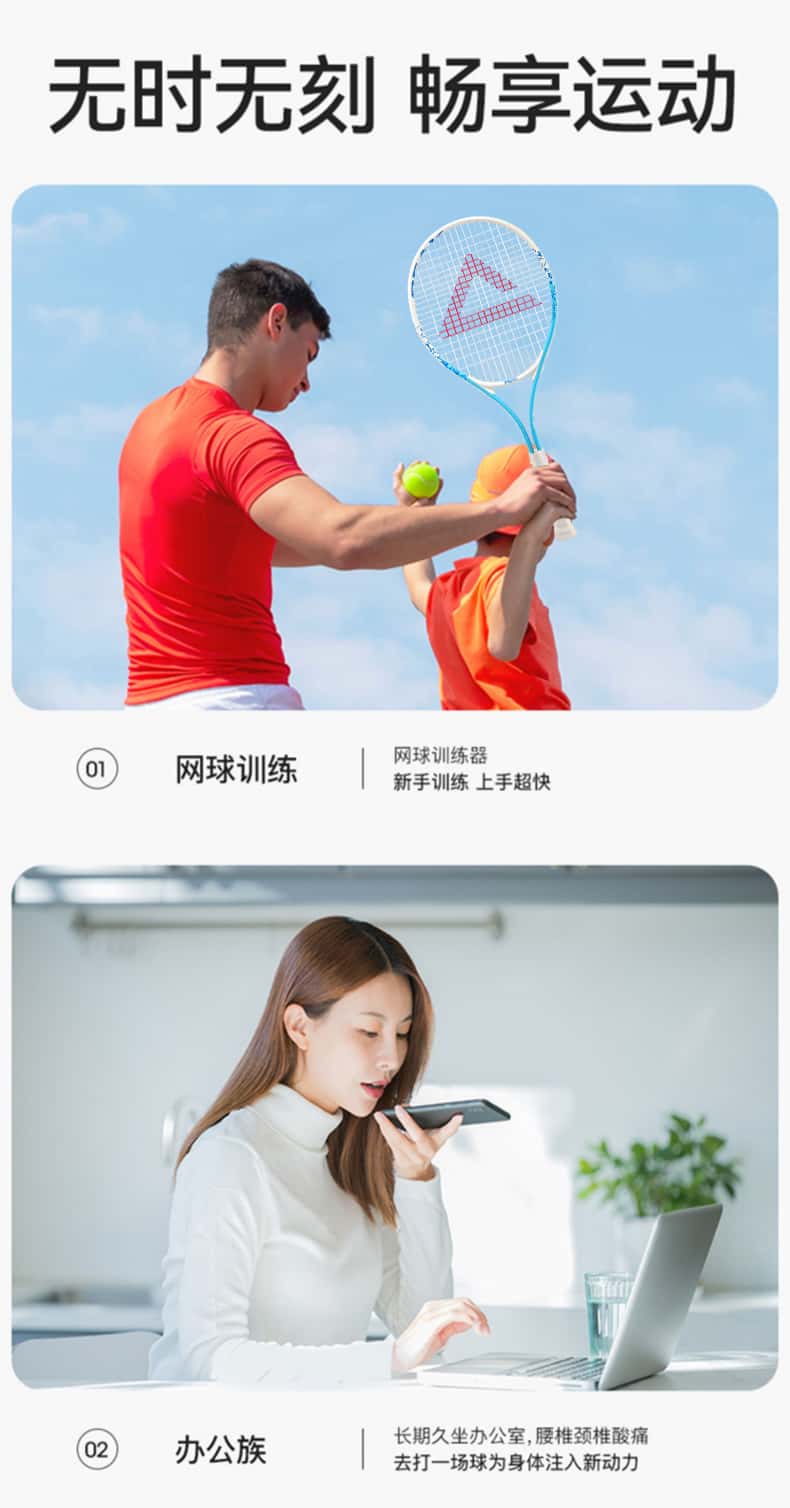 冲驰网球拍初学者大学生单人回弹训练器全碳素一体女新手双人套装