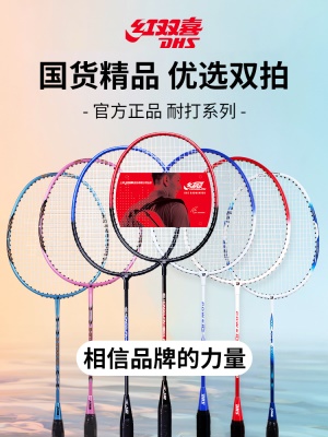 红双喜羽毛球拍正品套装儿童小学生双拍初学者碳素纤维成人专业拍